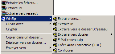 - sélectionner "WinZip, Extraire vers le dossier D:\reseau"