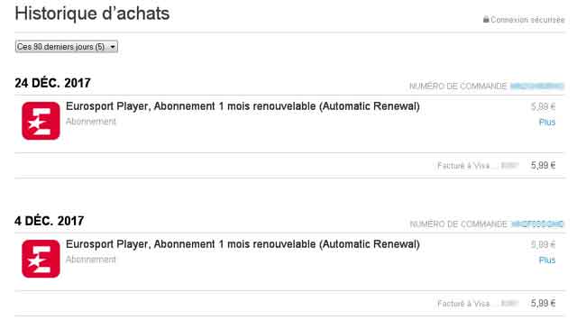 Pour ma part, je paie un abonnement (très cher) à Eurosport Player. Et le mois de décembre a été facturé deux fois par Apple. Et c'est un vrai dialogue de sourds.