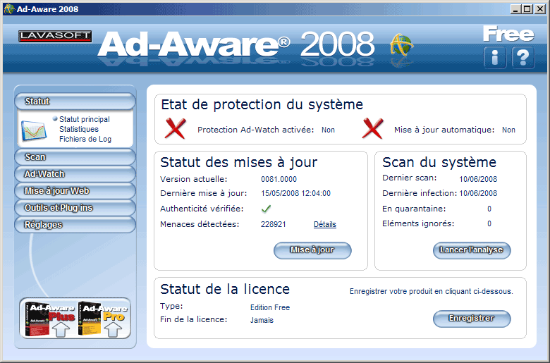 Janvier 2009 : Ad-Aware 2008 Free est désormais = INUTILE