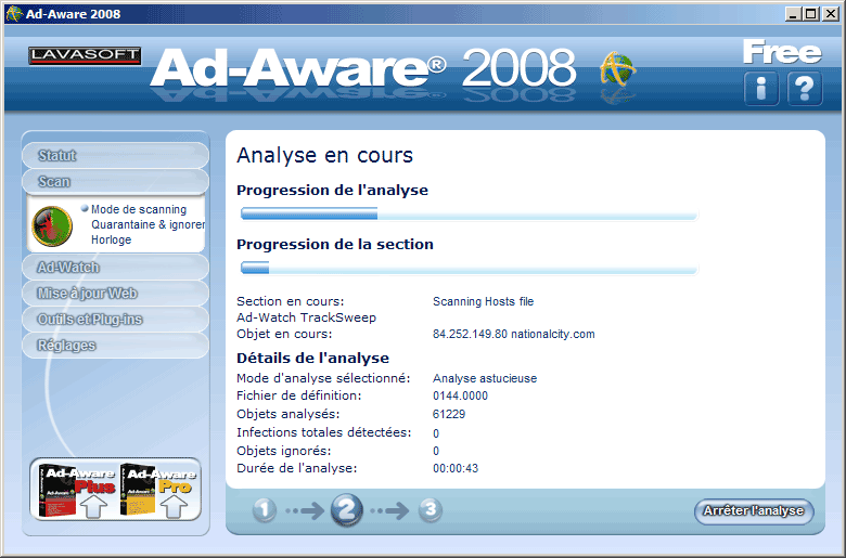 L'utilisation d'Ad-Aware se fait en trois étapes :