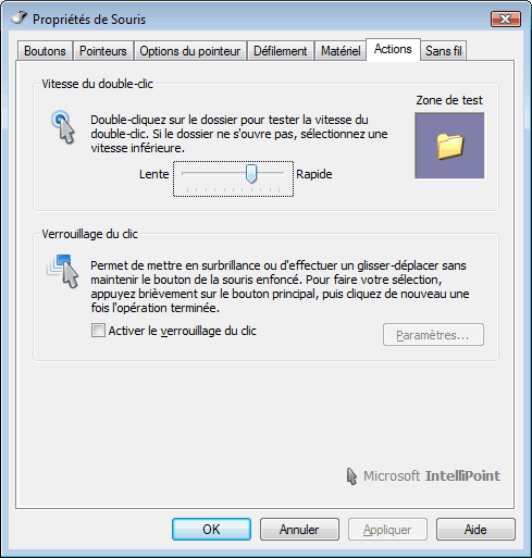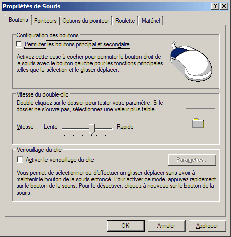 Il peut être nécessaire de régler la vitesse du double-clic "à sa main".
