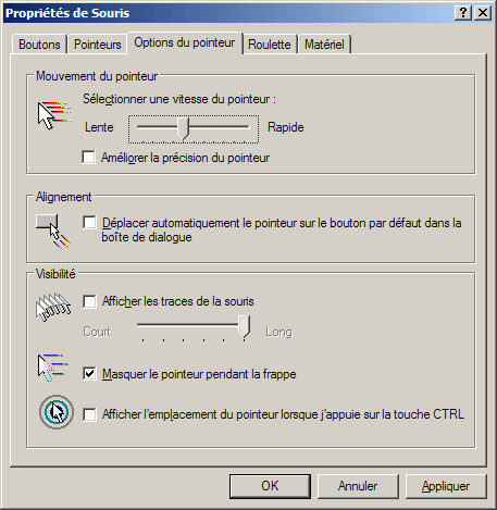 - cocher "Placer automatiquement le pointeur sur le bouton par défaut dans les boîtes de dialogue
