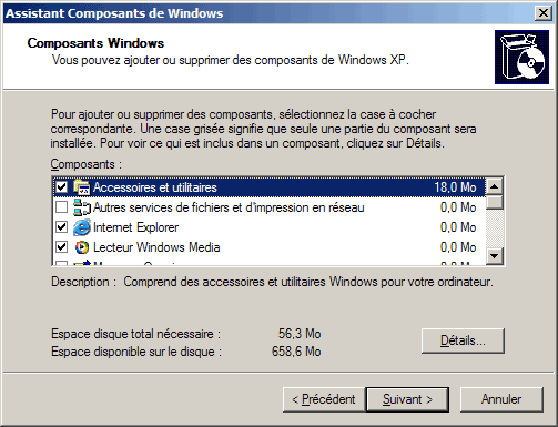 Cette liste concerne Windows XP. Il y a peu de différences dans Windows 98, mais on peut citer