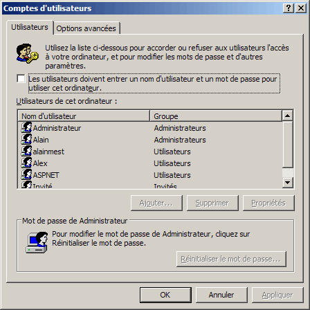 ![]() Comptes d'utilisateurs nusrmgr.cpl control userpasswords |