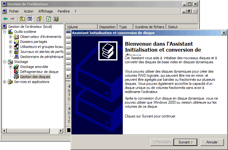 La fenêtre de l'Assistant Initialisation et conversion de disque s'affiche :