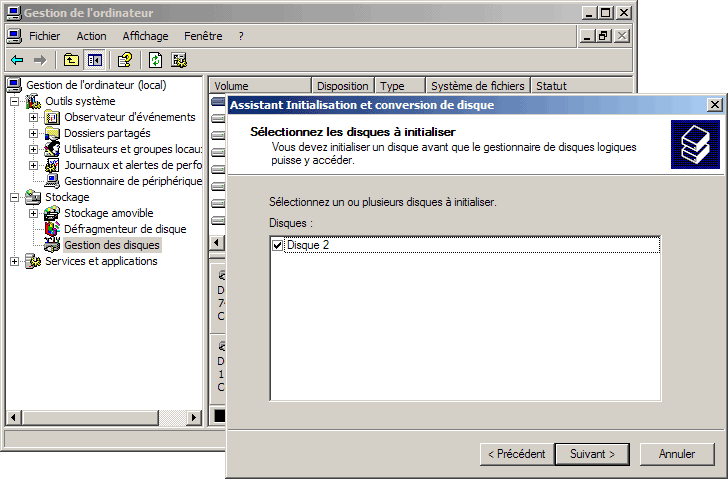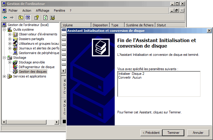 du Gestionnaire de disque.