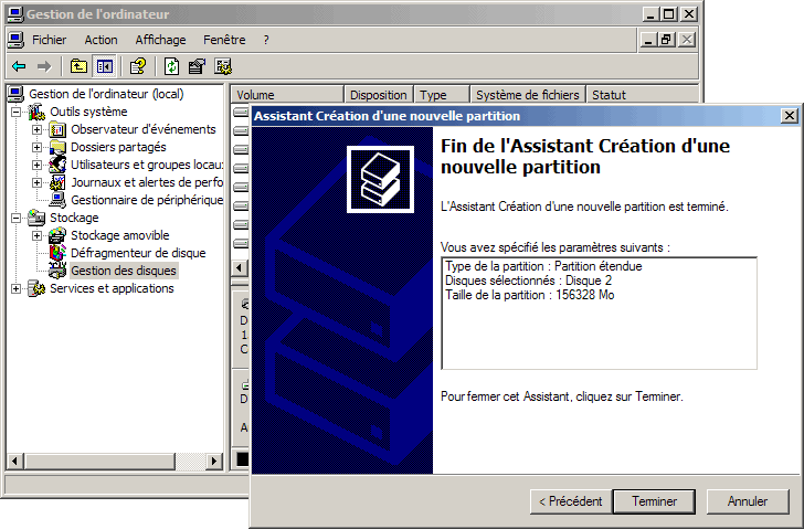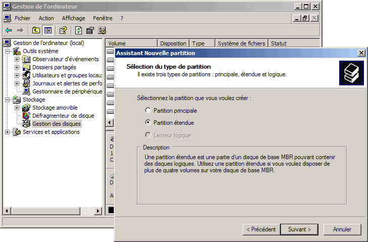 - - 1 Créer une partition étendue