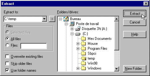 - sélectionner un dossier pour recevoir le contenu de l'archive,