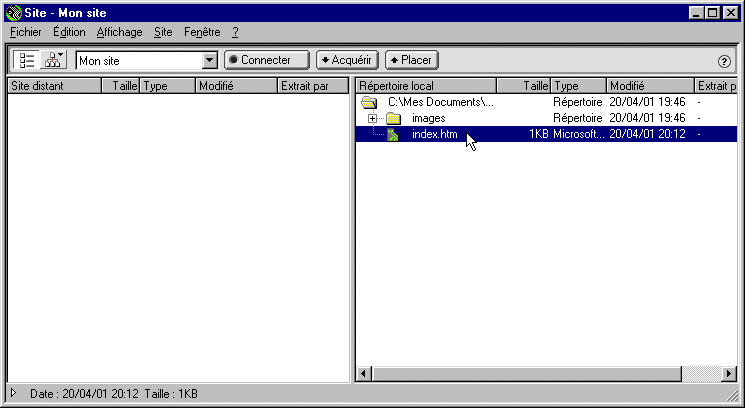 PS Au lieu de créer un fichier index.htm maintenant, on peut consulter le paragraphe concernant