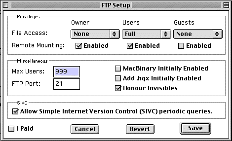 - installer un serveur FTP sur le Macintosh : NetPresenz