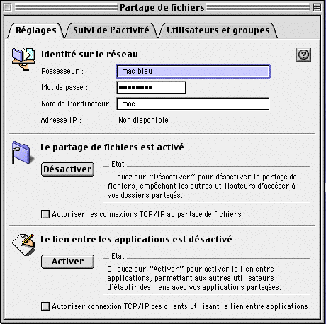 - cliquer sur Activer pour activer le partage de fichiers (écran)