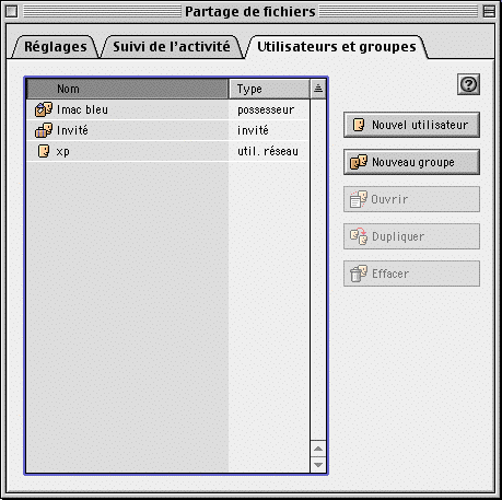 - onglet Utilisateurs et groupes,