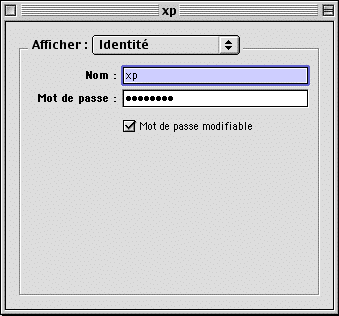 Dans Mot de passe : rentrer le mot de passe (xp),