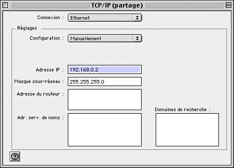 - menu Pomme, Tableaux de Bord, TCP/IP,