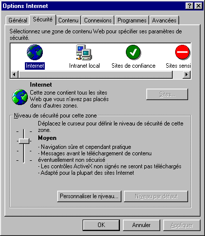 La configuration d'Internet Explorer s'effectue avec le panneau de configuration Options Internet