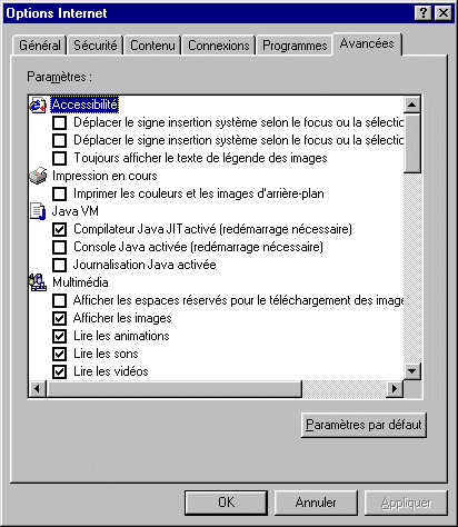 - cocher "Vider le dossier Temporary Internet Files lorsque le navigateur est fermé"