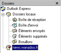 Maintenant, dans la fenêtre Dossiers d'Outlook Express, on voit un dossier (news.wanadoo.fr pour les abonnés à Wanadoo) contenant le forum auquel on s'est abonné..