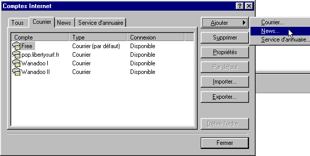 La procédure sera la même que celle expliquée précédemment. Seul le nom du serveur de News changera.