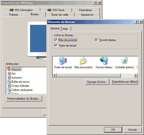 Cela peut concerner l'affichage des icônes Poste de Travail ou Mes documents.
