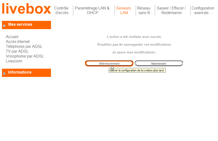 Voir : Livebox sagem :configuration + Activation de la DMZ