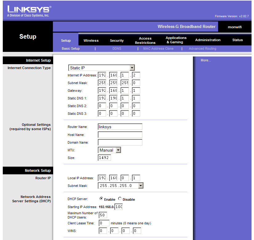 - Créer une DMZ (tout le trafic réseau est dirigé, sans contrôle, vers le routeur : dangereux)