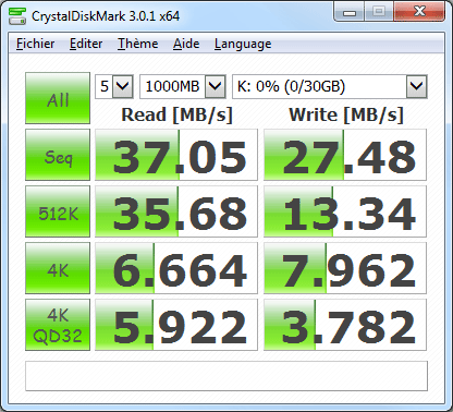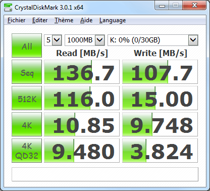 Les différences sont importantes selon que l'on utilise une clé USB 2.0 ou une clé USB 3.0