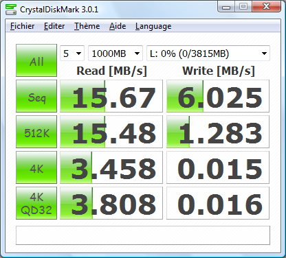Ca n'est pas le modèle Flash Voyager GT (plus rapide) mais le débit est déjà meilleur qu'avec la Verbatim 4 Go.