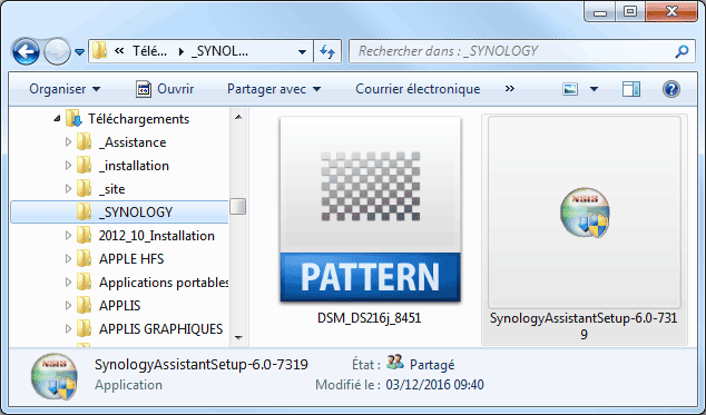 - créer un sous-dossier Synology pour y mettre les deux éléments à télécharger :
