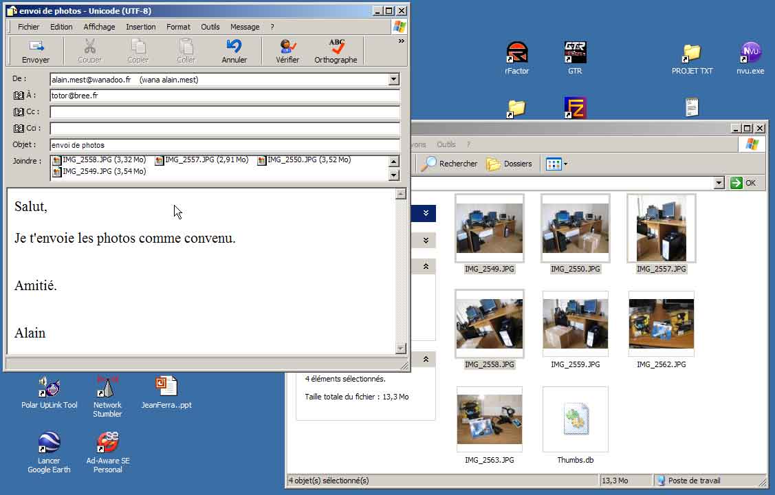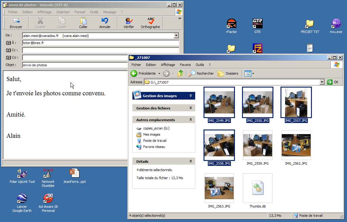 Si on veut envoyer une copie d'écran, on peut la réaliser avec ScreenRip32 (voir ma page)