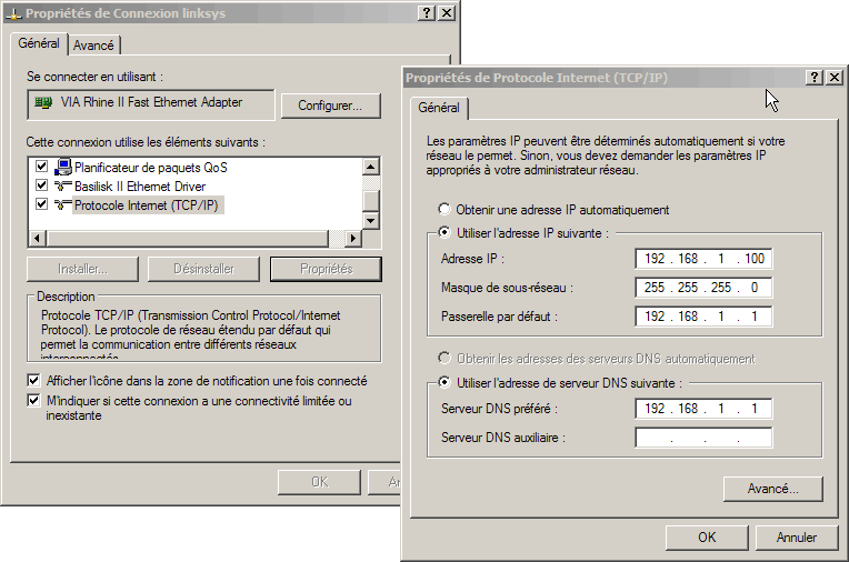 En plus de mes pages sur le réseau, 2 articles à consulter pour mettre en réseau Windows XP et Windows Vista.