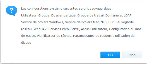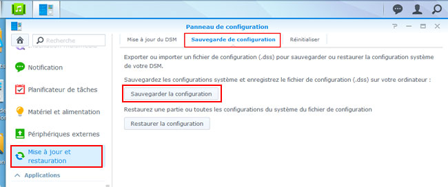 La sauvegarde de la configuration permet de retrouver ses paramétrage en cas de réinstallation.