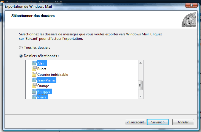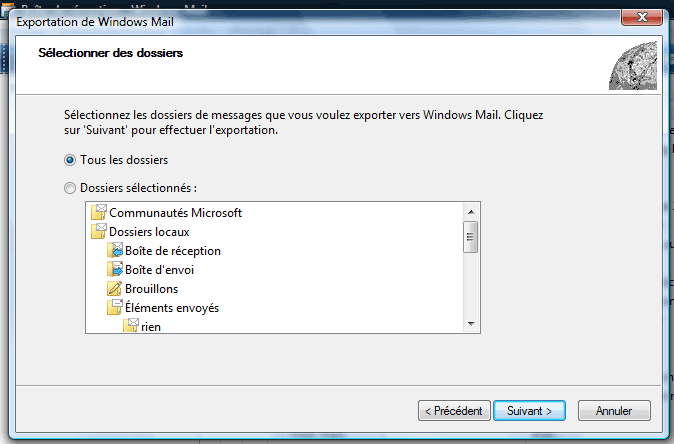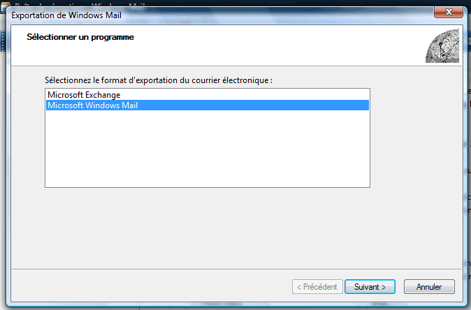 - sélectionner le format d'exportation : Microsoft Windows Mail
