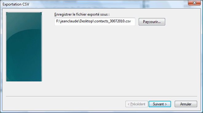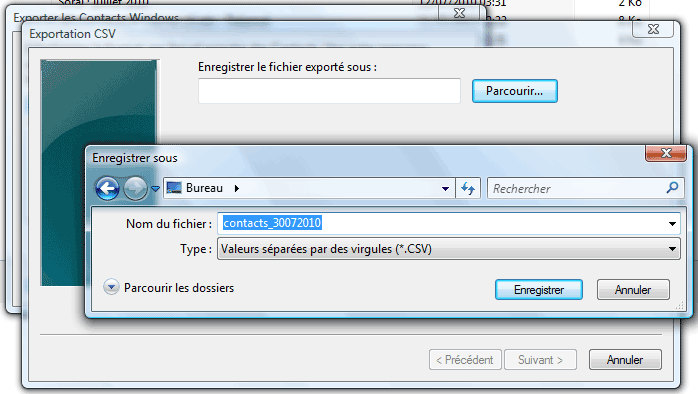 - nommer le fichier : exemple : contacts_30102010 (jourmoisan)
