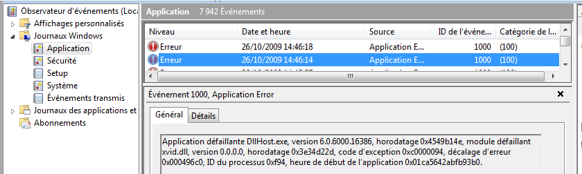 01/03/2007 : Bug connu : "Calendrier Windows a cessé de fonctionner"