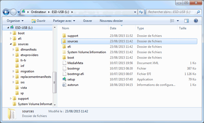 Exemple : une clé USB créée avec MediaCreationTool :