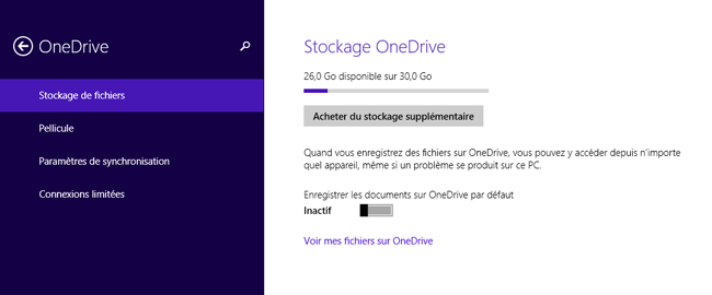 "Un panneau de configuration permet de synchroniser divers paramètres (applications Modern UI, réglages, écran démarrer, données des applications, favoris ou encore mots de passe), et de définir des exceptions en cas de connexion data limitée. La section Skydrive des paramètres permet également d'activer ou désactiver la sauvegarde par défaut des fichiers téléchargés sur l'espace de stockage en ligne..."