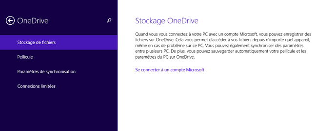 Pour utiliser Windows Drive sur Windows 8.1, il faut être connecté avec un compte Microsoft :