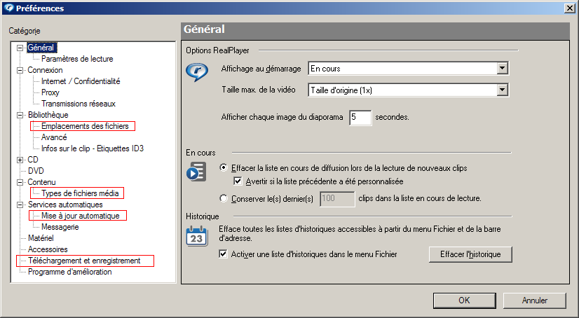 Faire de RealPlayer mon lecteur vidéo par défaut :