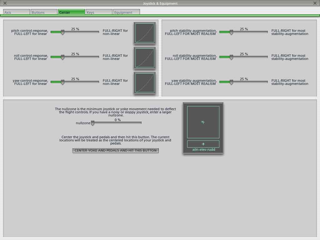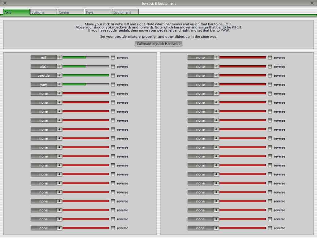 - menu Settings, Joystick & Equipment