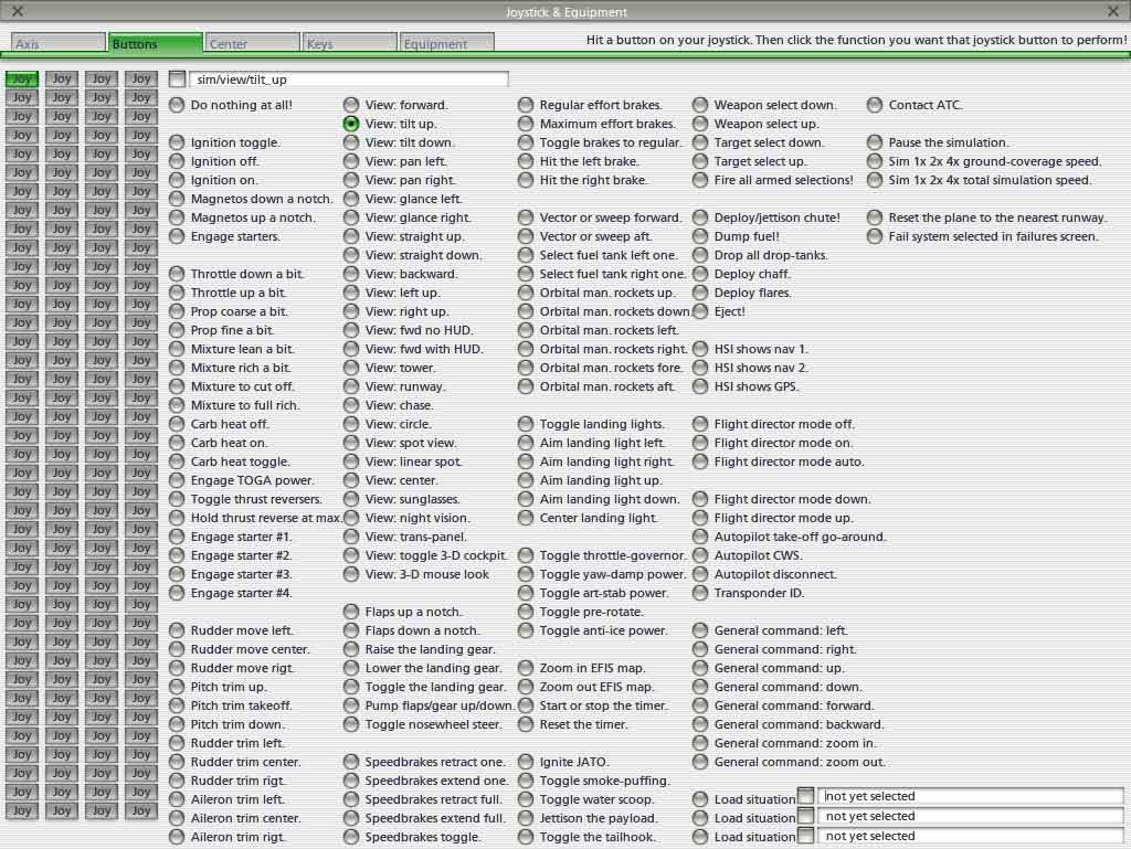 - appuyer sur un bouton du joystick. Un rectangle vert s'allume dans la partie gauche. "Do nothing at all!" est sélectionné. - cocher une action pour affecter la touche. |