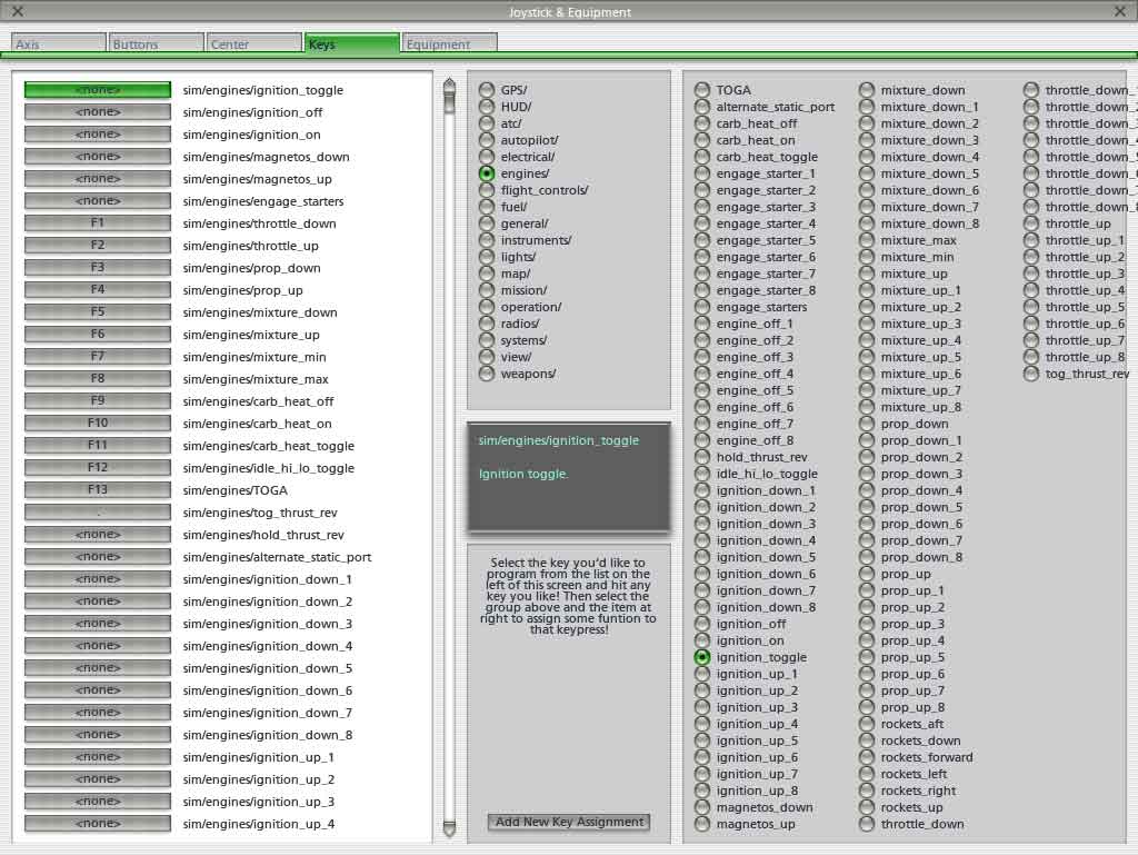 Axis - Buttons - Center - Keys - Equipment