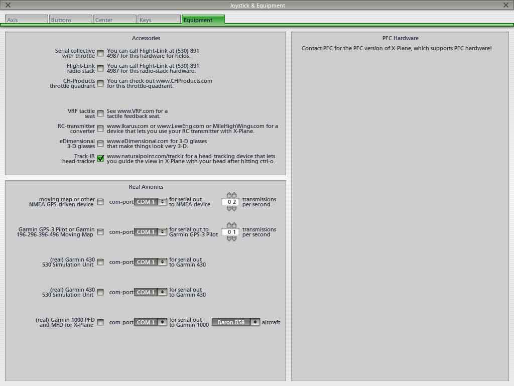 Equipment : - cocher la case du trackIR si on en utilise un |