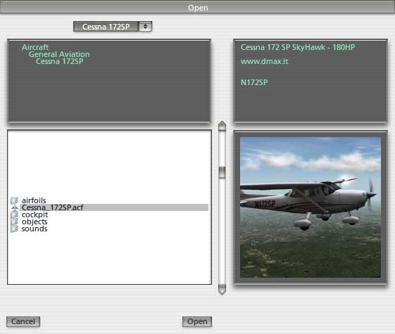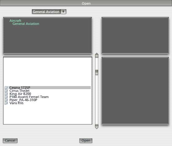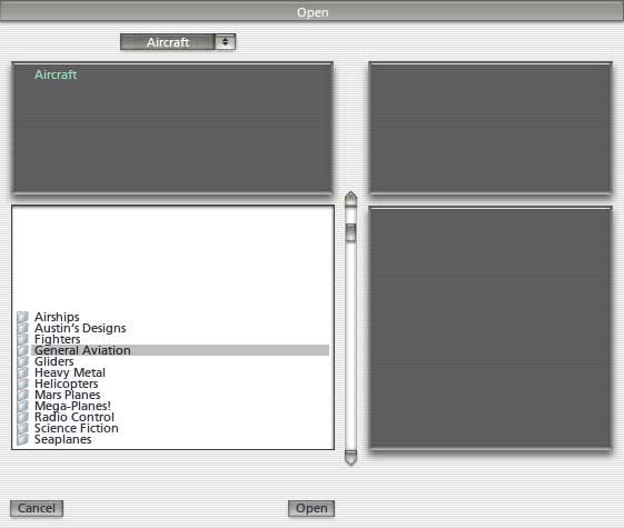 - menu Aircraft, Open Aircraft