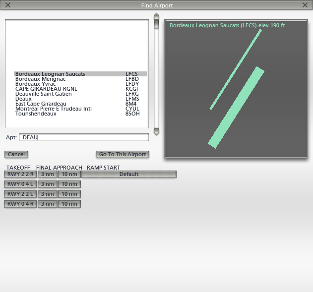 - appuyer sur Entrée, ou cliquer sur "Go To This Airport"